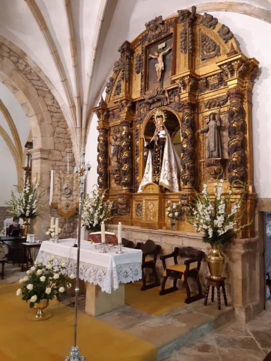 La imagen de la Virgen en su hornacina y Jesús en el Sagrario.