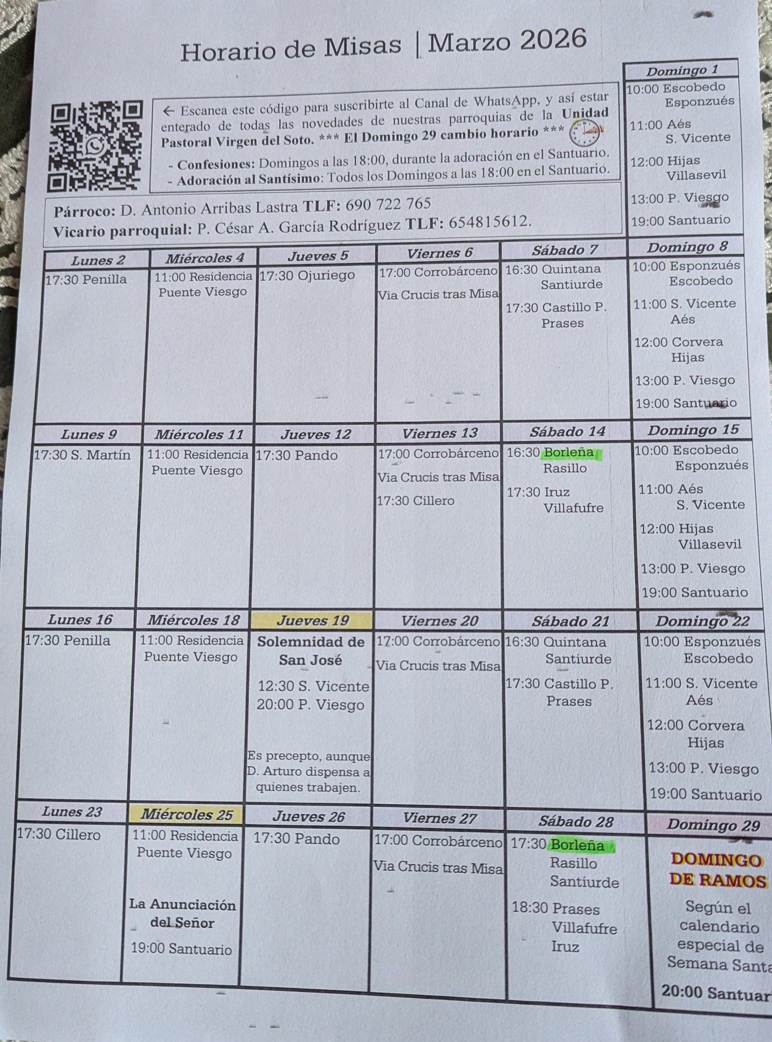 Horario de Misas en las Parroquias de Toranzo – Año 2026 » Horario Misas Marzo 2026