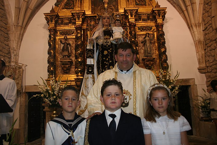 Los niños de Primera Comunión también acompañan a la Virgen.