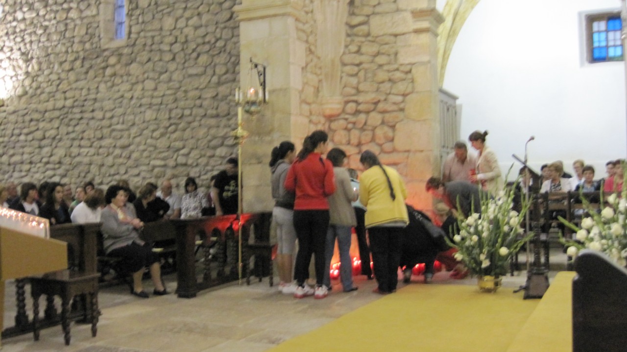 Es primera hora de la mañana 06.30 h ya hay gente para la celebración de la primera Misa a las 07.00 a la que acuden muchos fieles. Muchos llegan andando desde lejos, otros en coche para luego ir a trabajar. Todavía hay poca claridad.