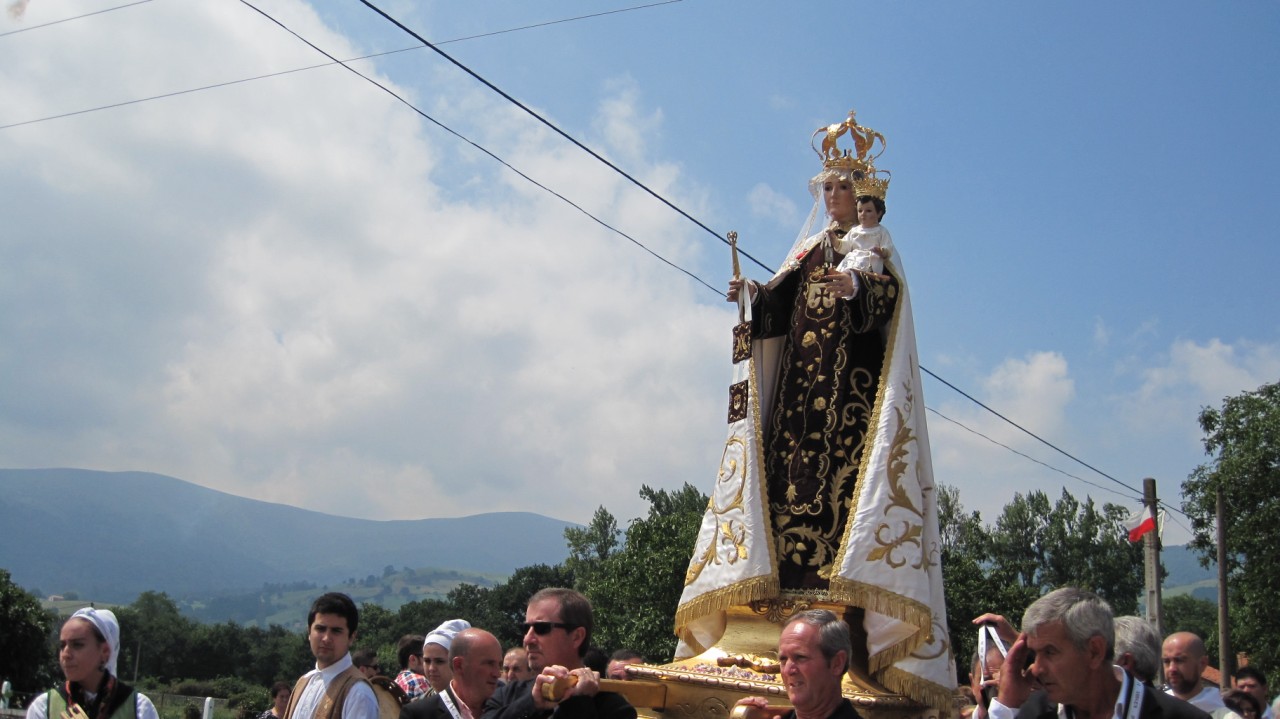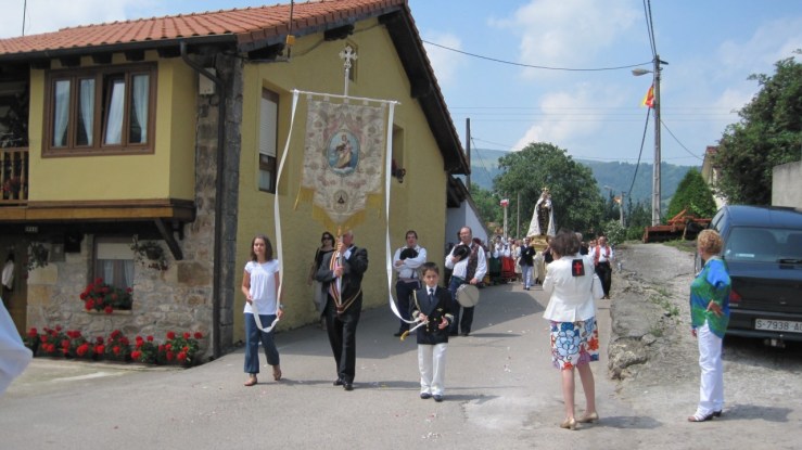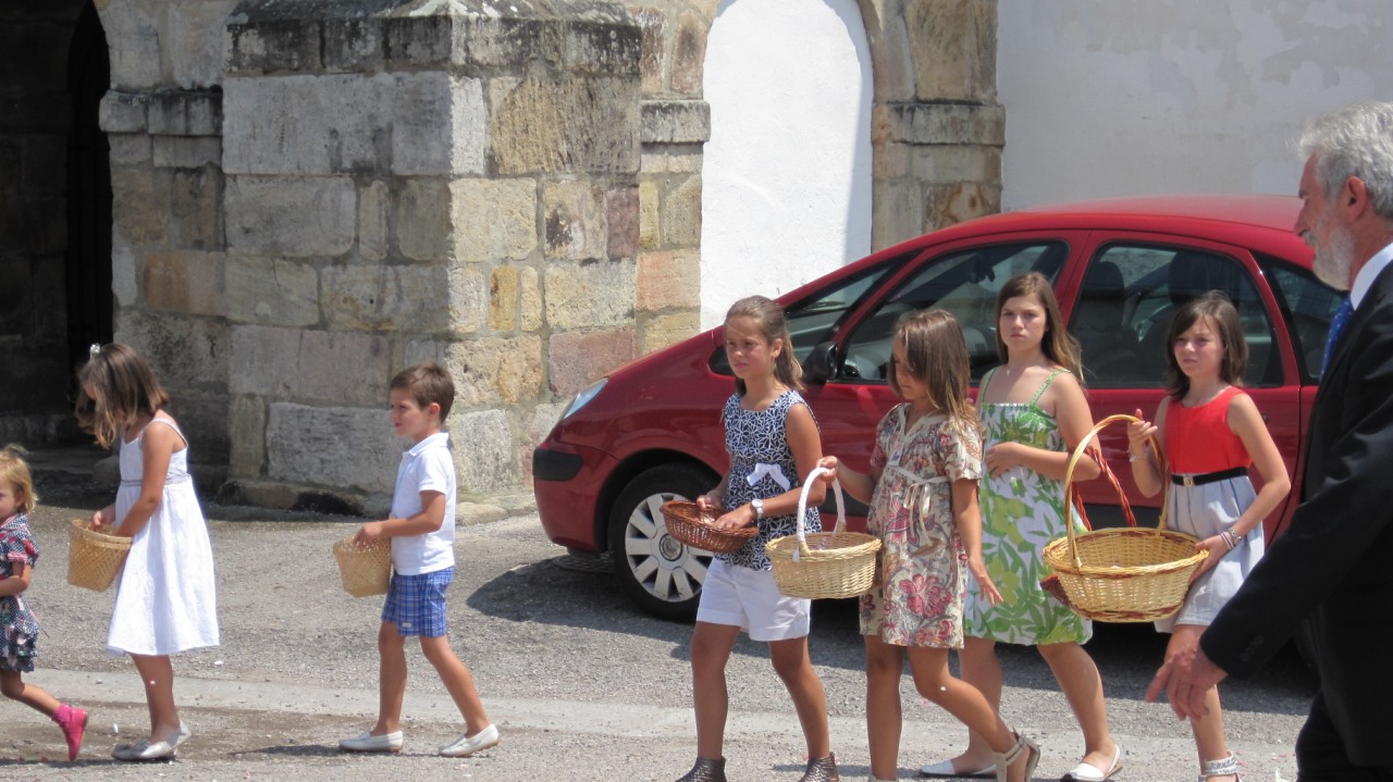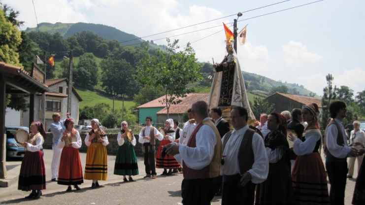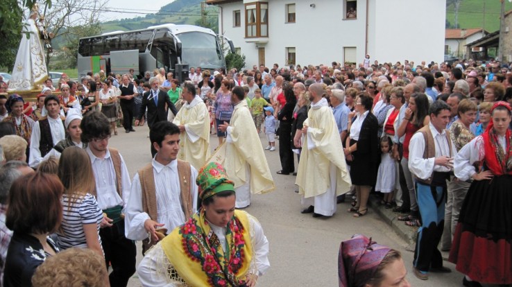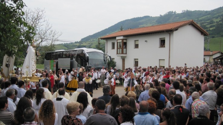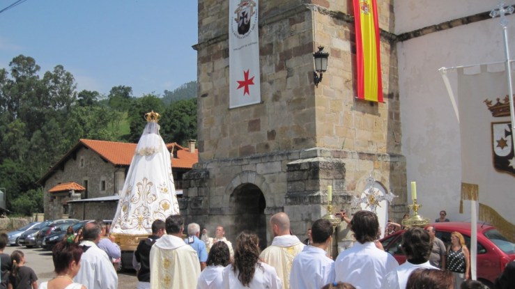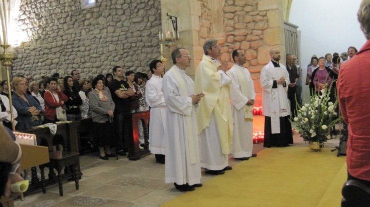 La primera Misa de 07.00 h. tradicionalmente es celebrada por D. Luis Carlos, párroco de la Colegiata de Castañeda, que llega a la ermita muy temprano andando, acompañado de muchos fieles de su parroquia y todos los que se le van uniendo en el camino.