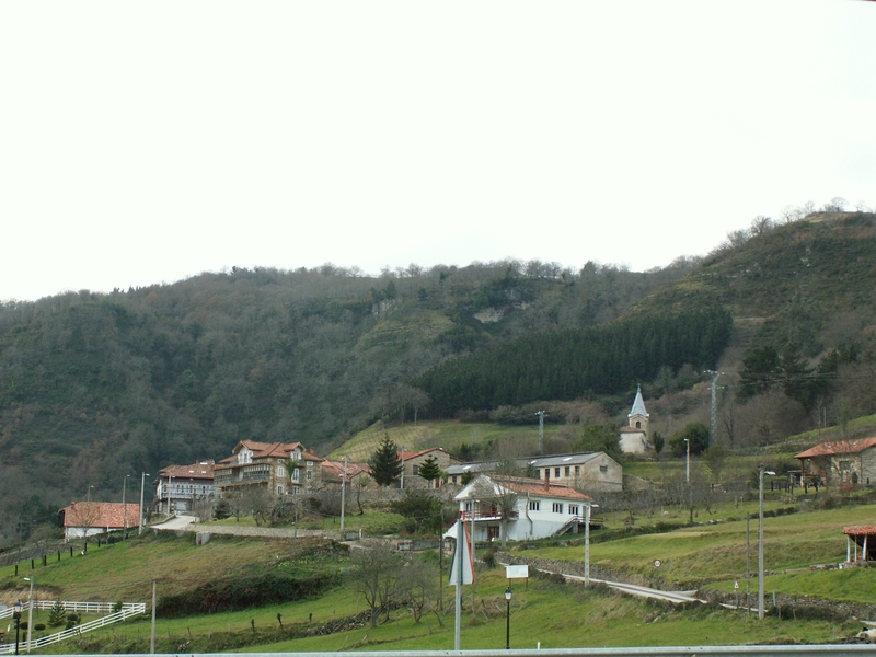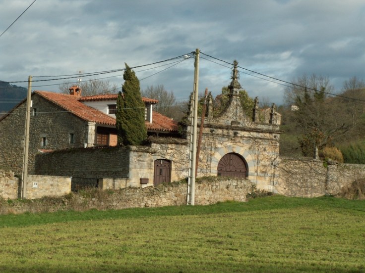 – Vista de Vejorís y casona montañesa con portalada.