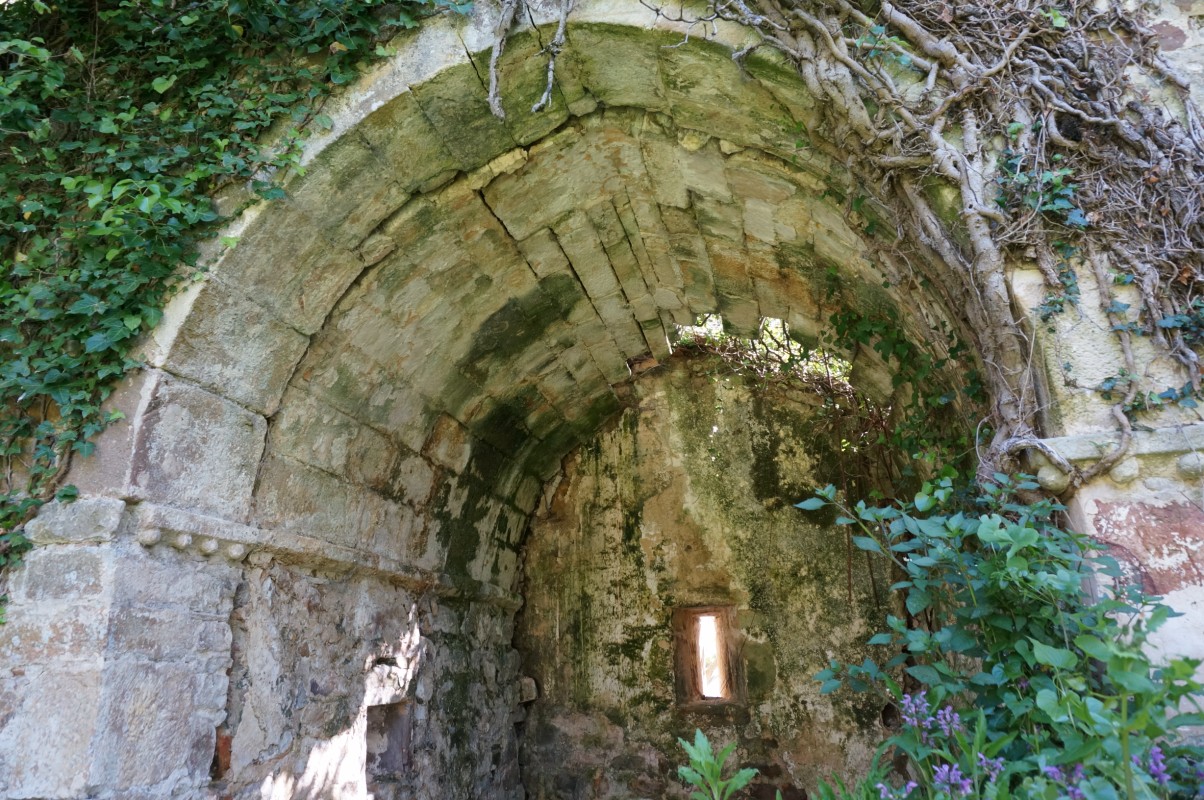 No queda campanario, tenía espadaña. La hiedra y matorrales se han adueñado de ella.